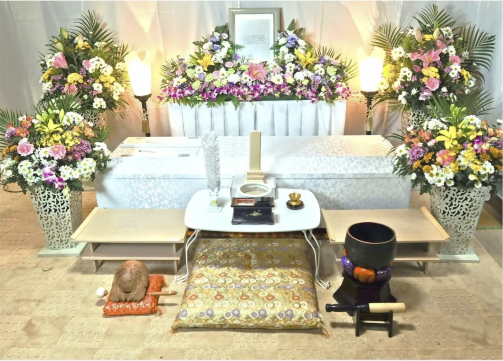 自宅葬Bプランと比べて、棺・納棺士による納棺・骨壺・アレンジ花が上ランクになり、とても華やかになります。